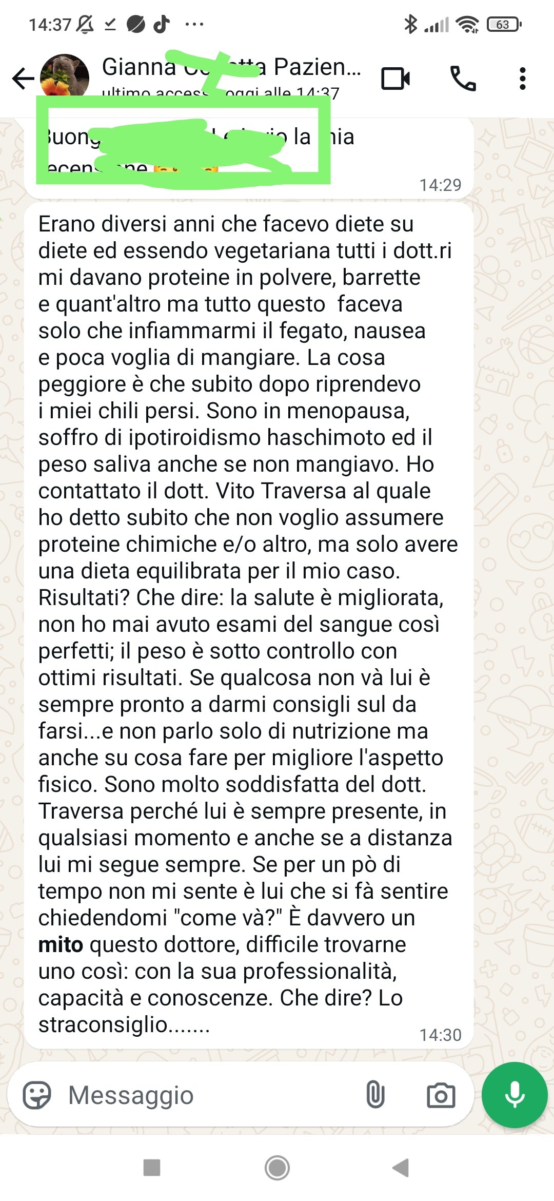 colloquio di 30-40 minuti con il Dott. Vito Traversa, Biochimico