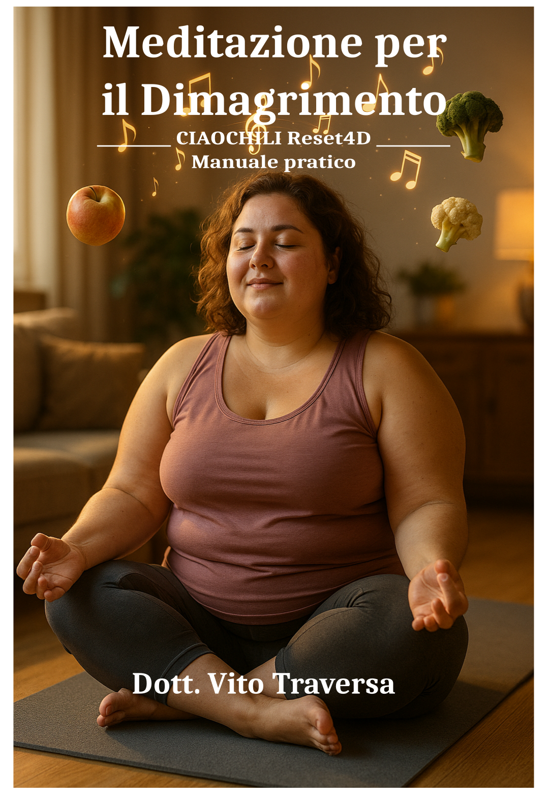 Dimagrire non è (solo) forza di volontà: è allenare piccole-scelte quotidiane. “Meditazione per il Dimagrimento – CIAOCHILI Reset 4D ” è un manuale pratico per trasformare stress, fame emotiva e craving in decisioni più serene e coerenti con la tua salute.